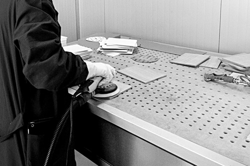 Disponiamo di una struttura dedicata, completamente attrezzata, dove il cliente è accompagnato, attraverso tutte le fasi di lavorazione, da una squadra di tecnici che provvede ad approfondire ogni aspetto delle varie lavorazioni, e lo guida a provare in prima persona gli effetti delle varie applicazioni.